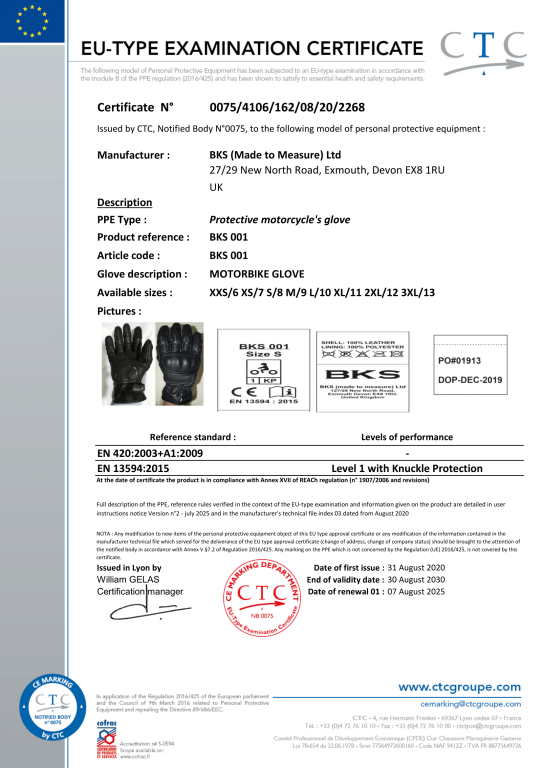Bike gear now falls under UK law where, as legitimate PPE, all motorcycle clothing manufactured since April 2018 has to meet EU standards. This entails full testing and certification to EN 17092 or if preferred, to the higher standard EN 13595. The latter is what UK Police forces have learnt is the more appropriate for their needs and are asking the British Standards Institute (BSI) to establish an Emergency Services British Standard for Motorcycle Clothing which they can rely on. Testing includes abrasion resistance, cut resistance and tensile strength.