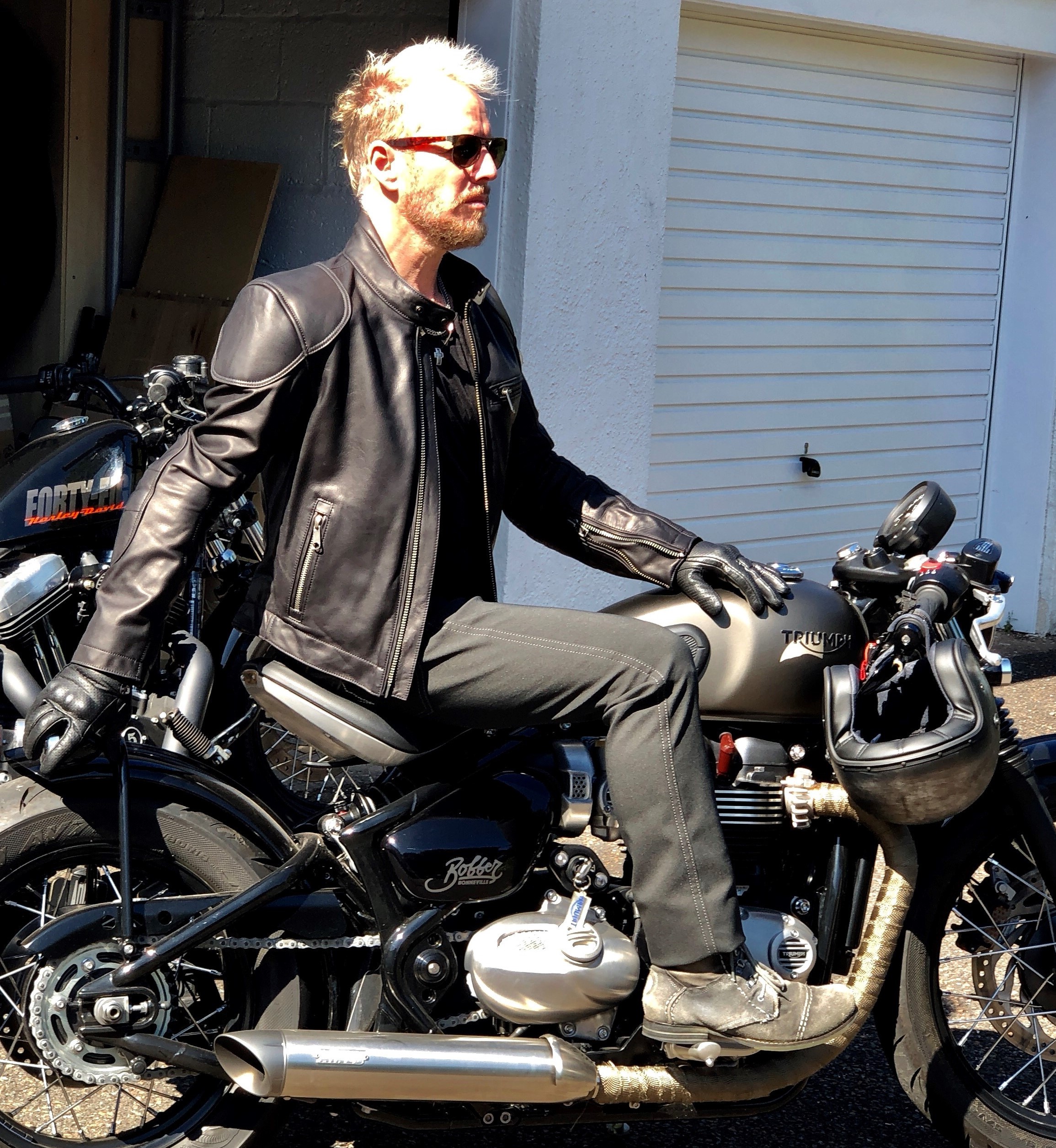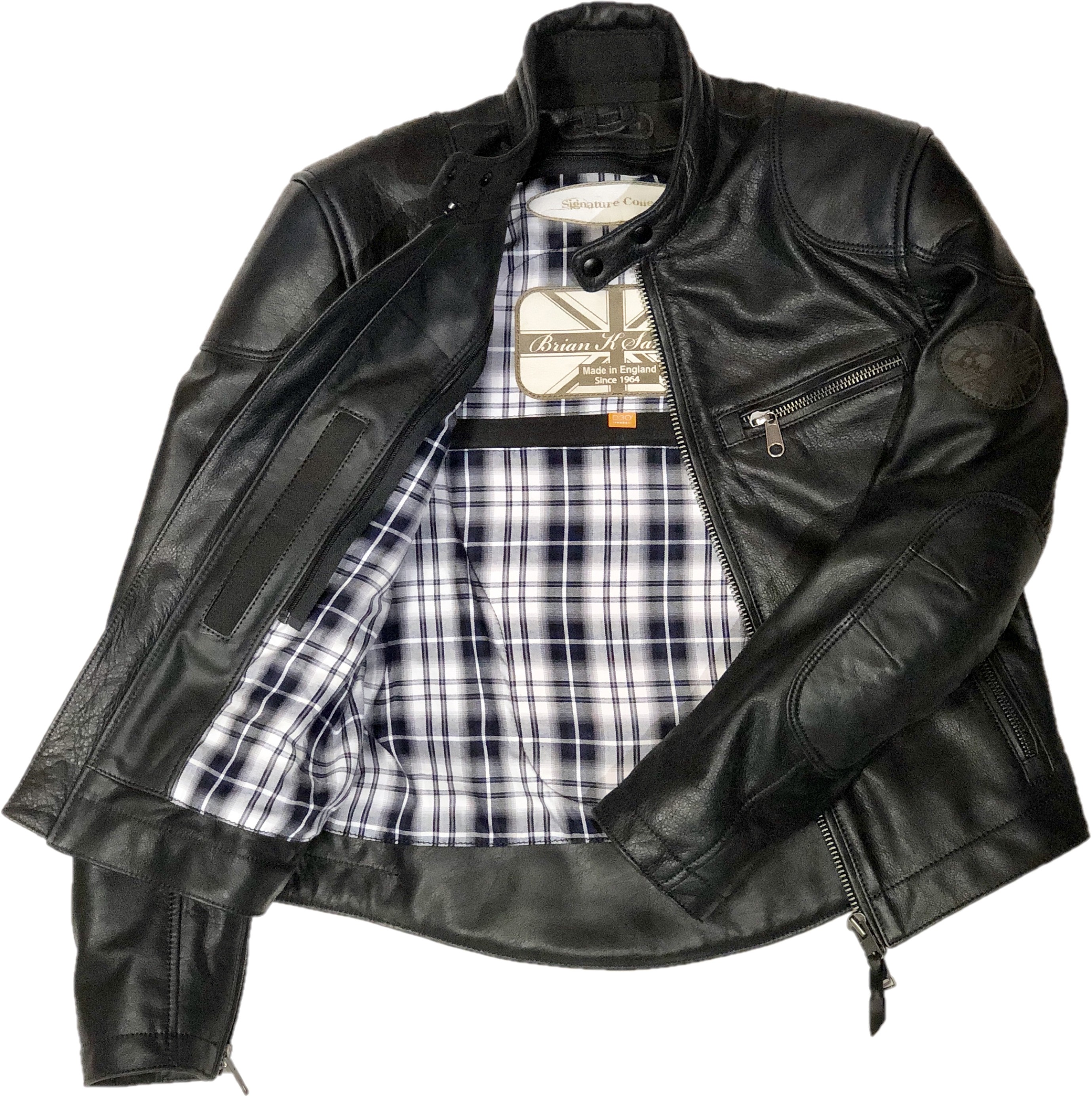 - Luxurious Black Cafe Racer jacket with Double leather shoulders and elbows.